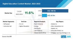 Fact.MR reports that the rising demand for K to 12 online educational content is expected to drive growth in the worldwide digital education content market.