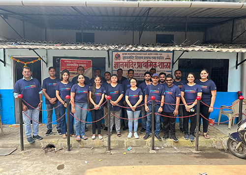 Michelman Associates in India volunteered at Dnyanmandir Primary School, spreading out across the campus, painting walls, planting saplings, and doing roof repair work. They also provided uniforms for students, purchased and installed playground items such as a see-saw and slide for the children, and purchased electronic equipment and school supplies.