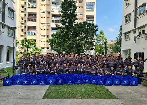At the South West Community Development Council (CDC) in Singapore, associates distributed care packs containing food, coffee, and household items to local residents.