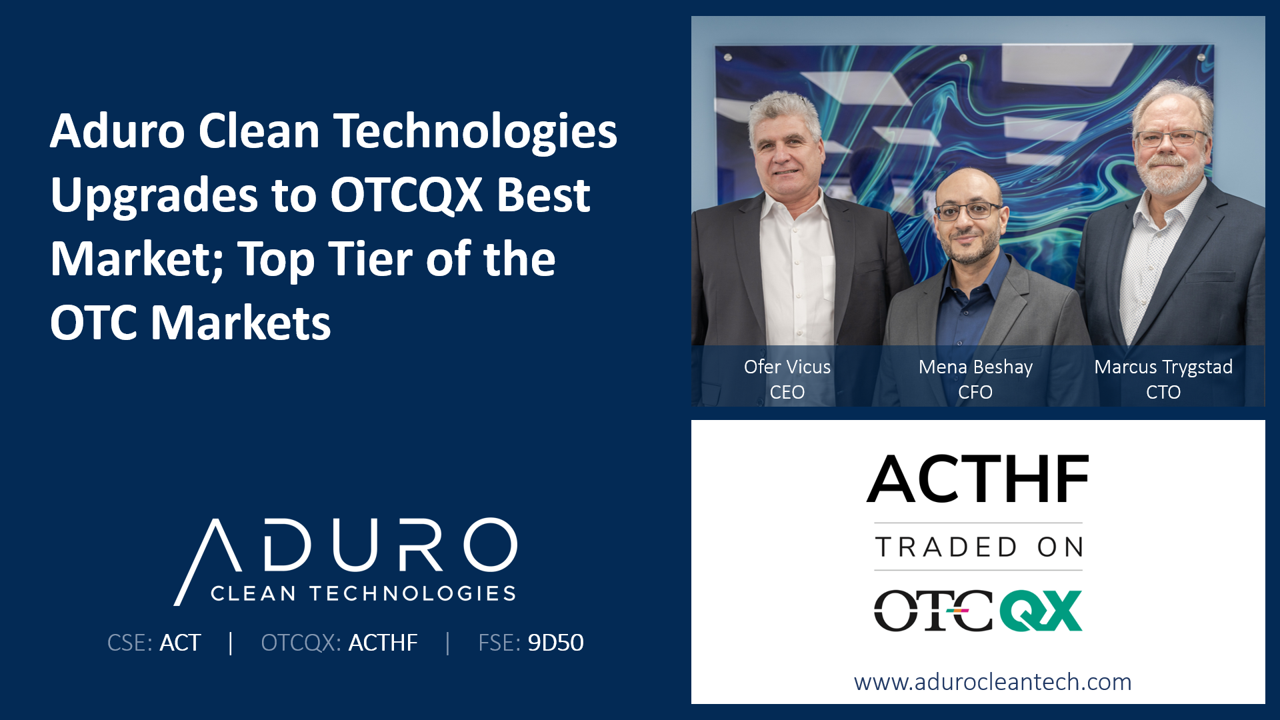 Aduro Clean Technologies désormais admise aux négociations sur le marché OTCQX Best Market, le meilleur des marchés de gré à gré