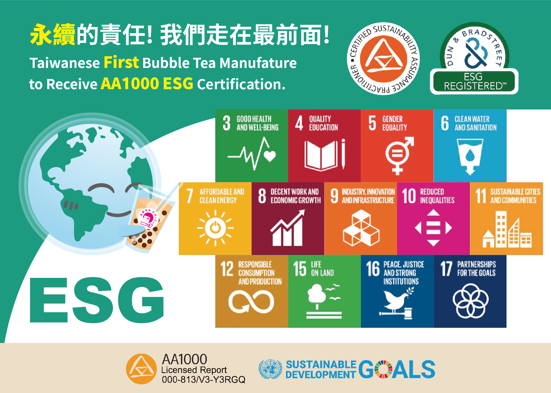Achieving this certification also demonstrates our commitment to our customers. As a bubble tea supplier, we know that our products have a wide audience in Taiwan and around the world. Our customers care not only about delicious drinks but also about how our products impact the environment and society. By receiving both the UK AA1000 and US Dun & Bradstreet ESG certifications, we show our customers that our products are not only delicious, but also a sustainable choice.