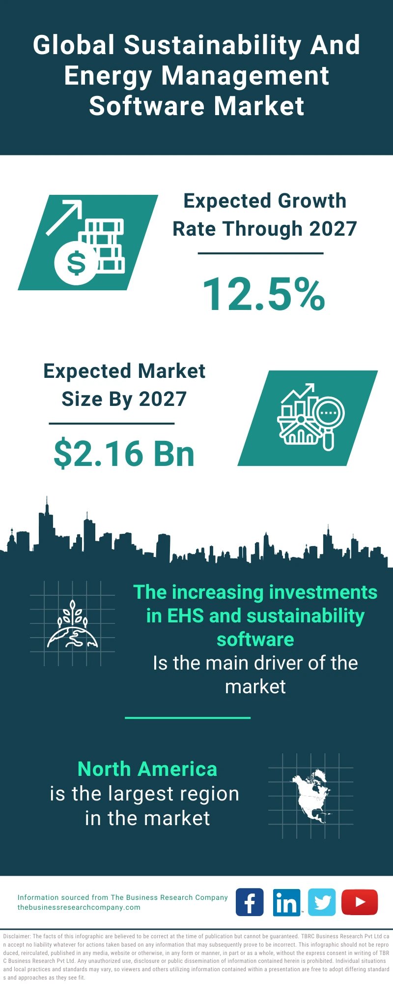 The sustainability and energy management software market is set to reach $2.16 billion by 2027 with a CAGR of 12.5%, according to TBRC's "Sustainability And Energy Management Software Global Market Report 2023."