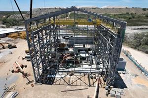 Progress on erection of the permanent rock and personnel winder building (October 2023).