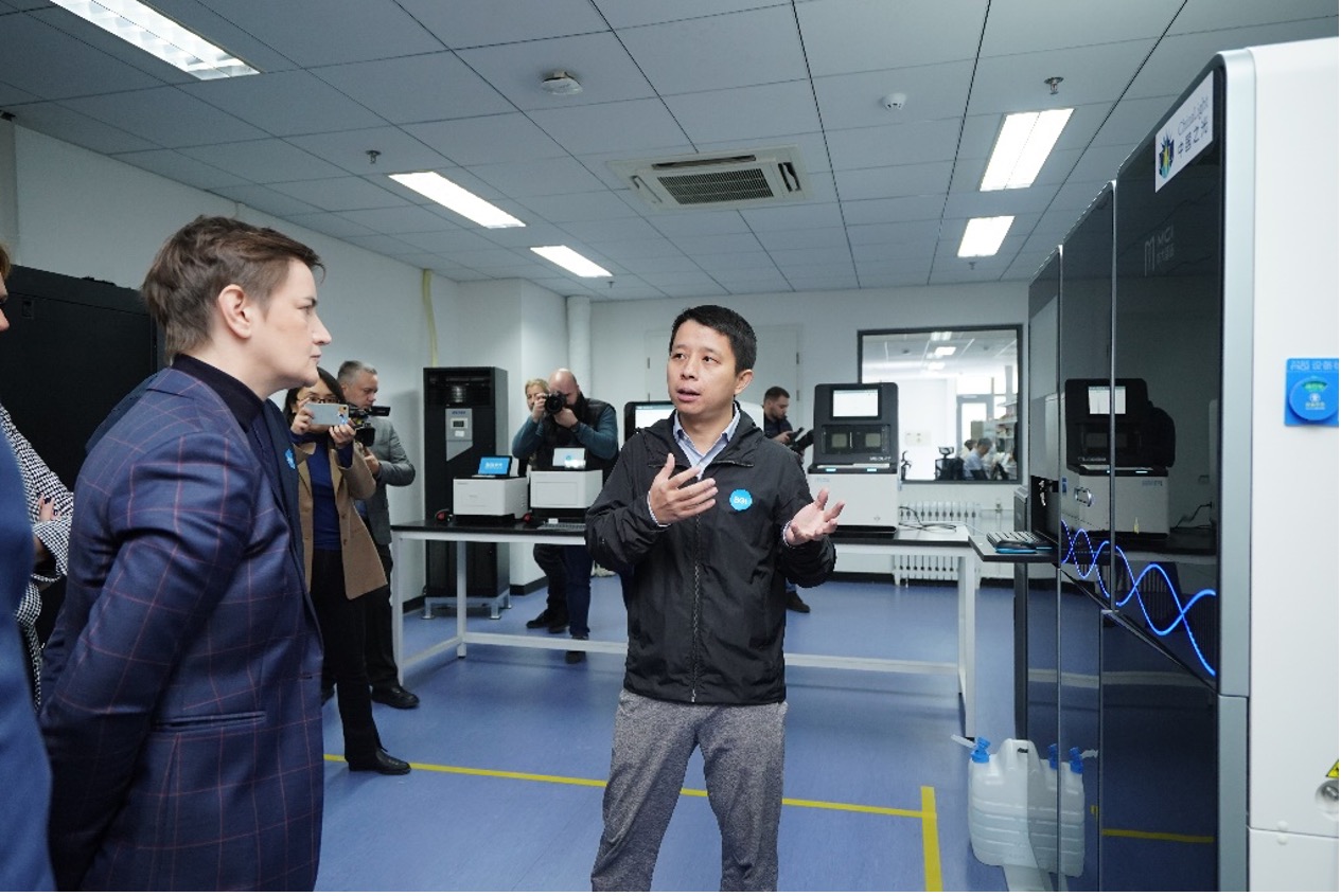 BGI Group dugo godina sarađuje sa Srbijom. Premijerka Brnabić je u decembru 2021. godine otvorila Centar za sekvenciranje genoma i bioinformatiku u Institutu za molekularnu genetiku i genetičko inženjerstvo Univerziteta u Beogradu, koji je izgradila BGI grupa.