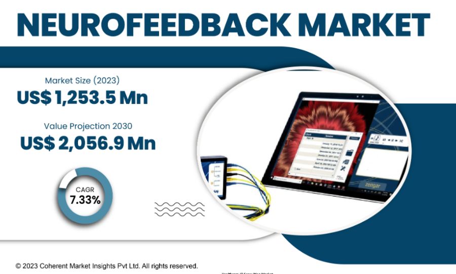 BURLINGAME, CALIFORNIA, UNITED STATES, November 13, 2023 /EINPresswire.com/ -- The Neurofeedback Market is estimated to be valued at US$ 1,253.5 million in 2023 and is expected to exhibit a CAGR of 7.33% over the forecast period 2023-2030, as highlighted in a new report published by Coherent Market Insights.