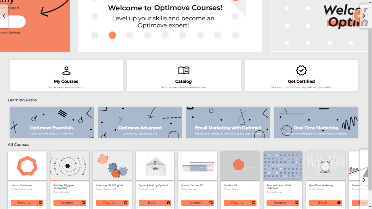 In the coming weeks, new learning paths will be added on Data and Reporting, Mobile Marketing, Opti-X (Optimove’s Digital Experience Platform), and more.