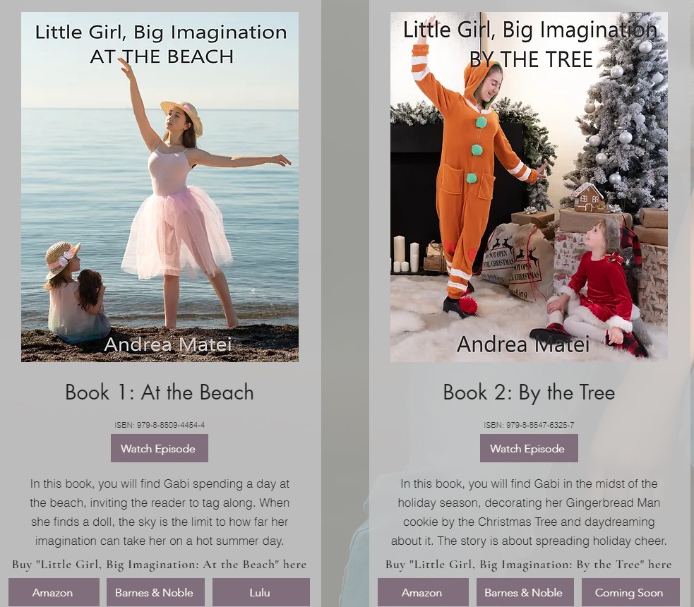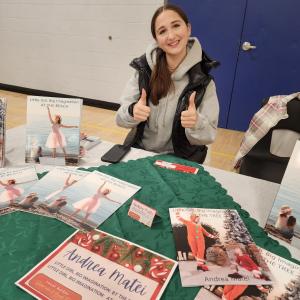 NEW TECUMSETH, ON, CANADA, November 16, 2023 /EINPresswire.com/ -- In a dazzling debut appearance at the New Tecumseth Library's Local Author Showcase & Book Fair on November 11, 2023, Andrea Matei, a talented teen author from Simcoe County, ON, unveiled her captivating children's picture book series, "Little Girl Big Imagination." The event, held at the Tottenham Community Centre, was a celebration of literary talent, featuring esteemed authors and book enthusiasts from the region.At the heart of Andrea Matei's series are her first two Childrens Picture Books, "At the Beach" and "By the Tree." Crafted as engaging early literacy tools, these stories offer young readers easily digestible text in a repetitive pattern, fostering a love for reading. The books feature a word list at the beginning and at the end to help prepare the readers ahead, as well as help solidify those recently learnt words, and even allows for a writing exercise. What makes these tales truly special are the real-life images of Andrea's little sister, Gabriela Matei, fondly known as Little Girl Gabi, courtesy of renowned Toronto Photographer, Ricardo Araújo. These images, combined with Andrea's creativity, bring to life the objects of Gabi's imaginative adventures. Notably, talented dancers like Leah Shenishevska step into the roles of Gabi's fantastical companions, such as the gingerbread man in "By the Tree."