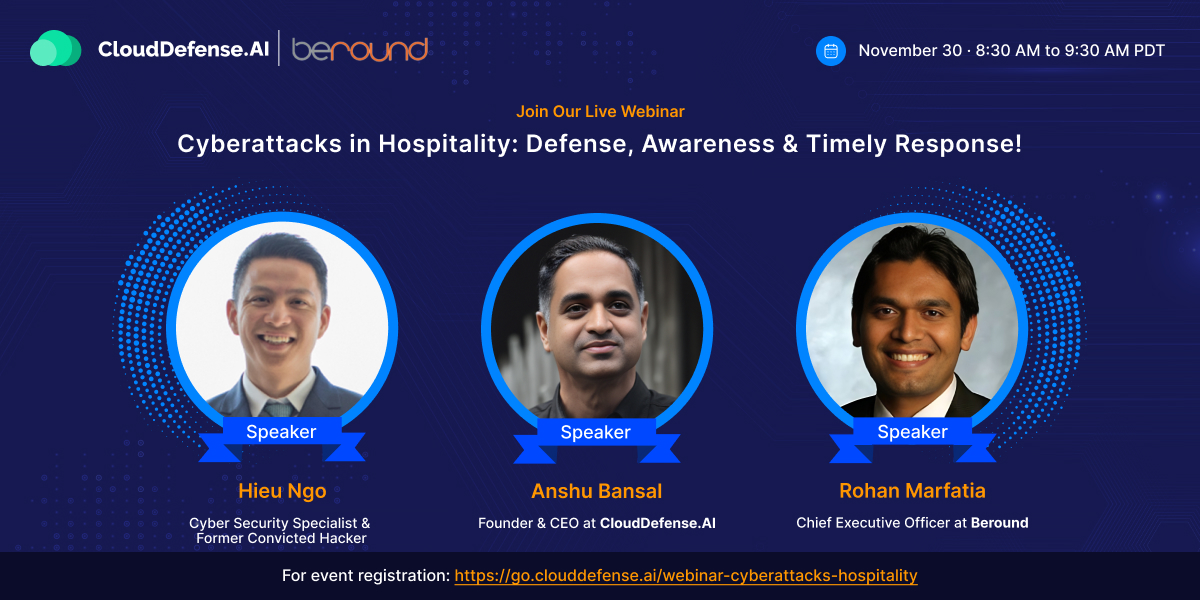 CloudDefense.AI and Beround are set to host a live webinar titled "Cyberattacks in Hospitality: Defense, Awareness & Timely Response!".