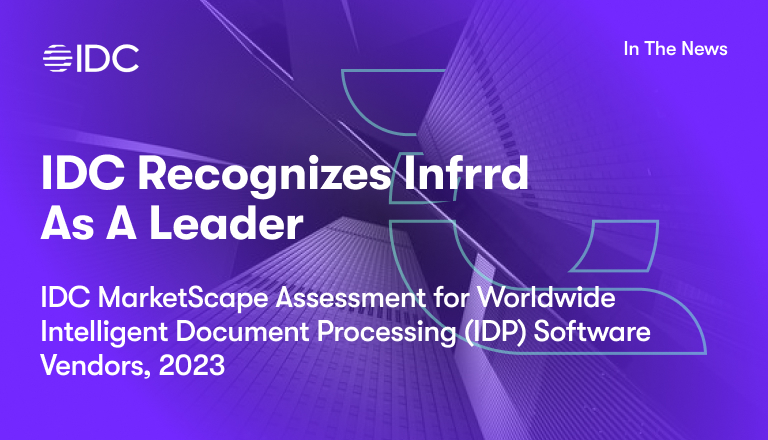Infrrd announces its recognition as a Leader in the IDC MarketScape: Worldwide Intelligent Document Processing Software 2023-2024 Vendor Assessment.