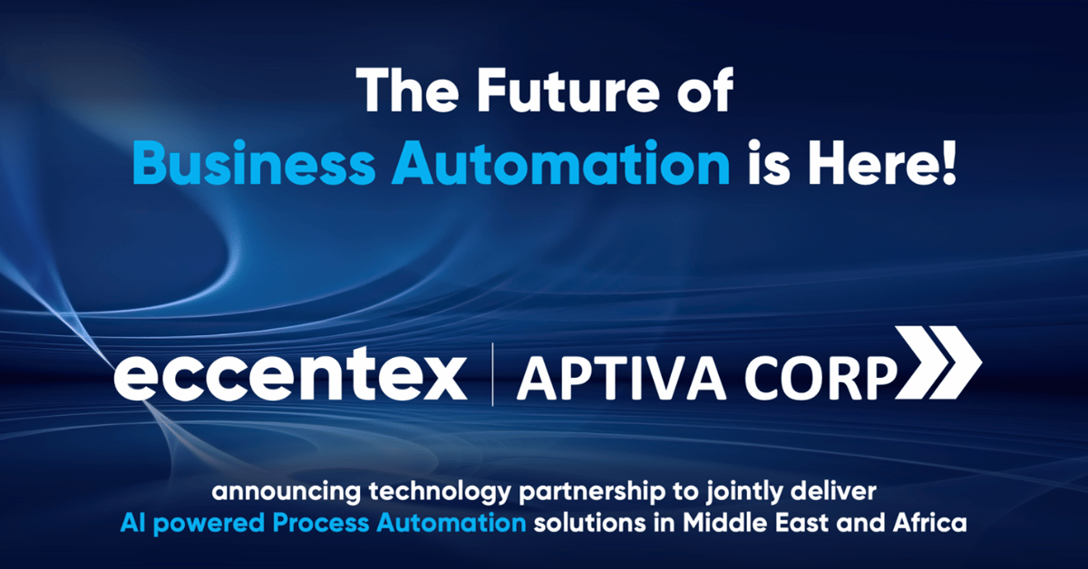 “Our technology partnership with Aptiva Corp. will extend our capabilities and enable us to deploy Eccentex HyperAutomation Cloud solutions closer to our customers in the Middle East and Africa. I’m excited to see how quickly we can expand our network and serve our customers better with the help of valued partners like Aptiva in this region.” – Alex Stein, CEO of Eccentex.