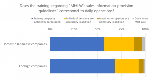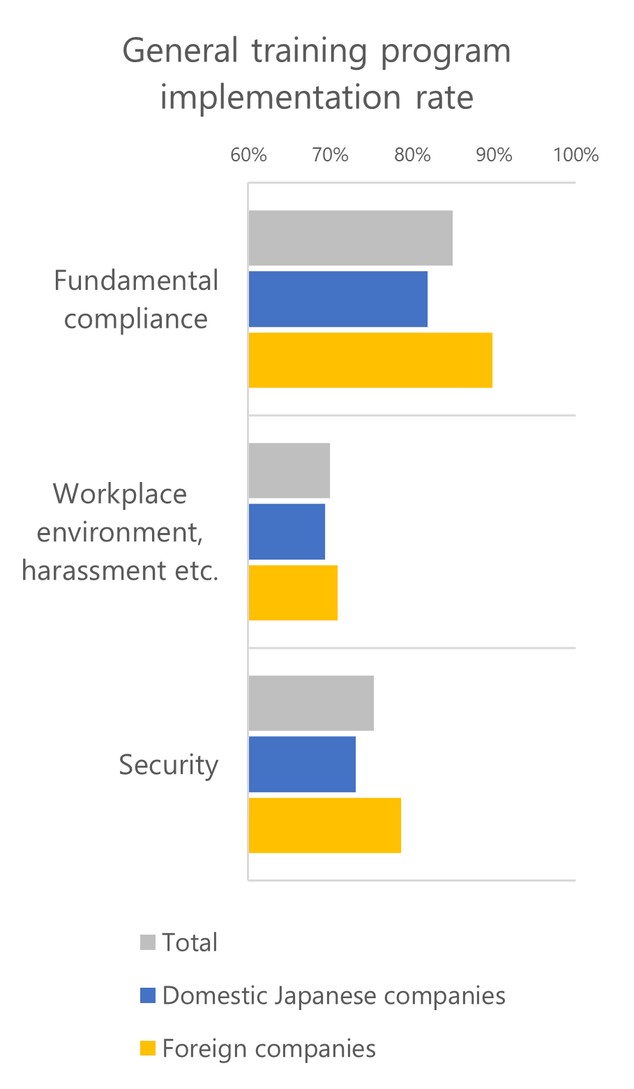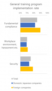 When comparing the rate of general compliance training program implementation, the rate for foreign firms was greater than that for domestic Japanese companies.