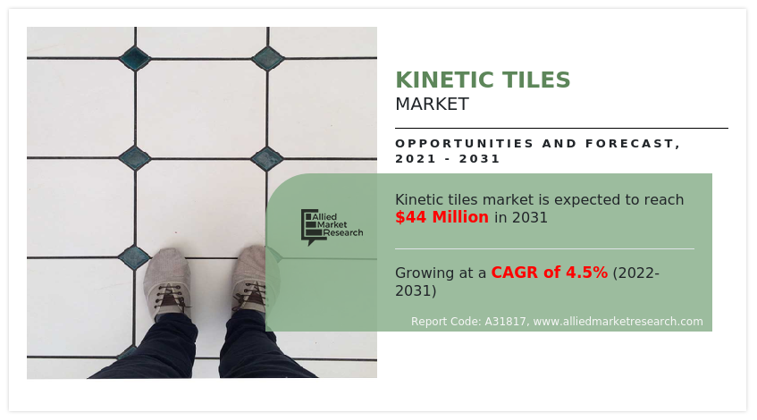 WILMINGTON, DELAWARE , UNITED STATES, November 22, 2023 /EINPresswire.com/ -- The kinetic tiles market share is expected to witness considerable growth in coming years, owing to increase in investment by prime players of the market in high performance kinetic tiles. Further, increase in demand for off-grid lighting solutions in urban areas is primarily expected to drive the global kinetic tiles market positively during the forecast.