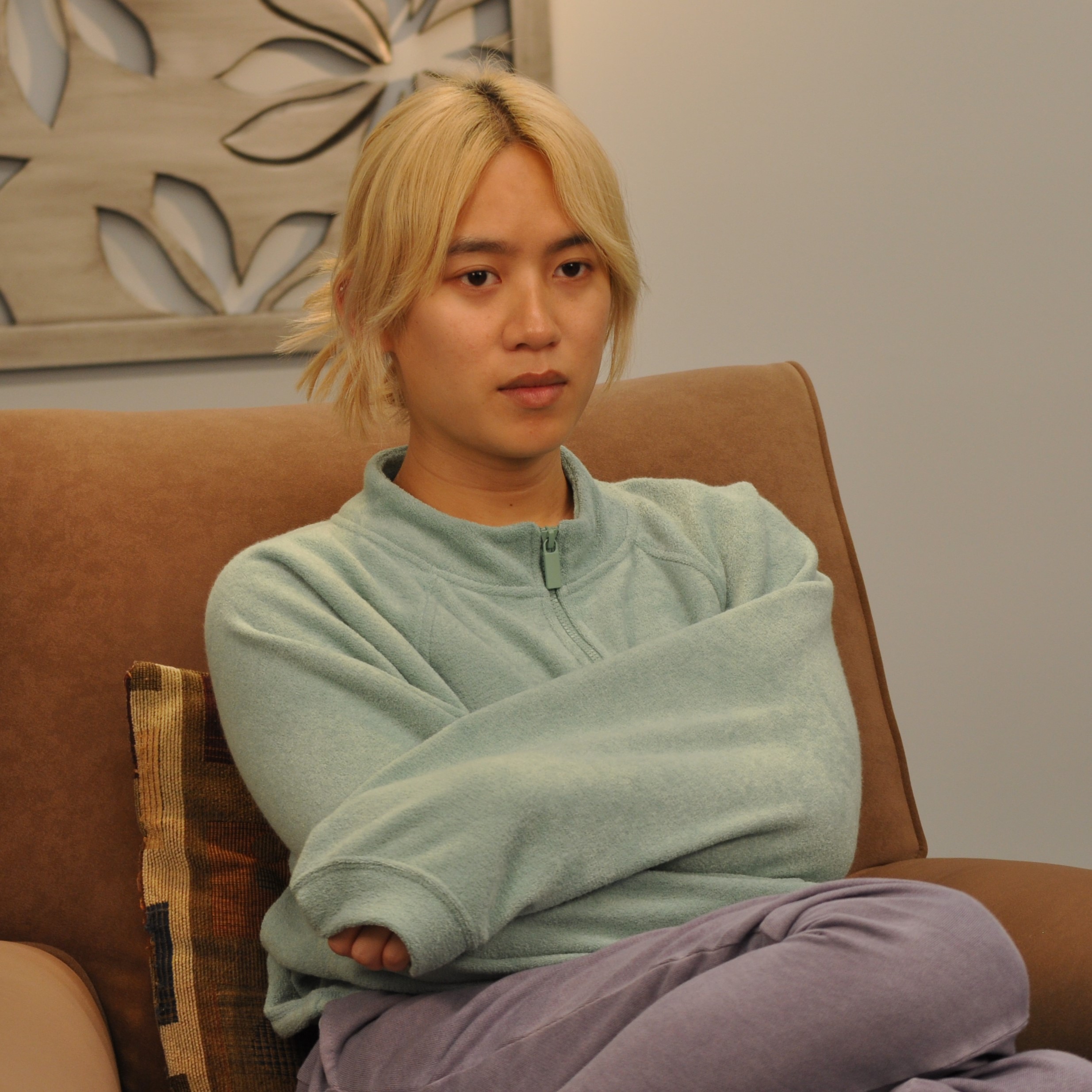 For this scenario, providers work at a clinic that offers suicide and crisis care. They practice talking with Eden, who portrays someone who walked into the clinic looking for support.