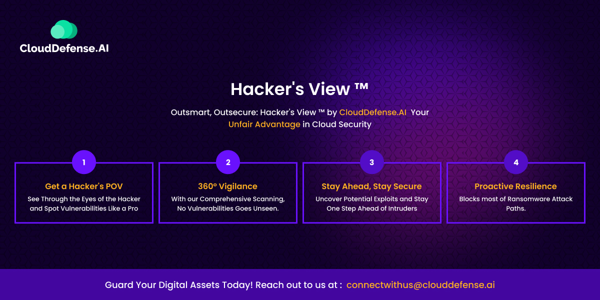 For more information about Hacker's View™ and other visionary cybersecurity solutions from CloudDefense.AI, visit here or book a free demo.