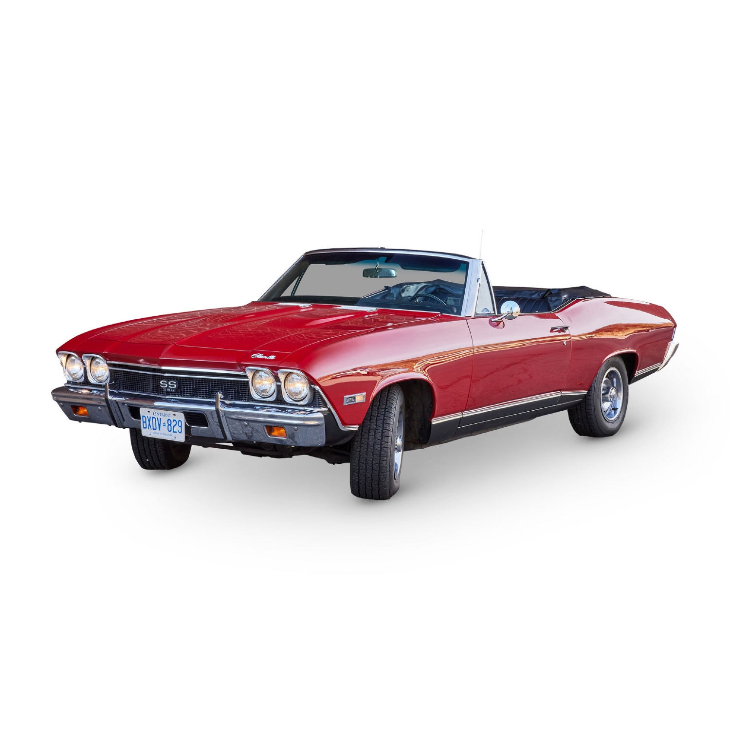 The 1968 Chevelle SS convertible was Howie’s pride and joy and contains the coveted 396 hp 4-bbl Turbo Jet V8 engine. It was one of only 108 produced for sale in Canada, having been built at the Oshawa plant and sold new in Port Hope, Ontario. The car’s convertible top and the black vinyl interior are both original.