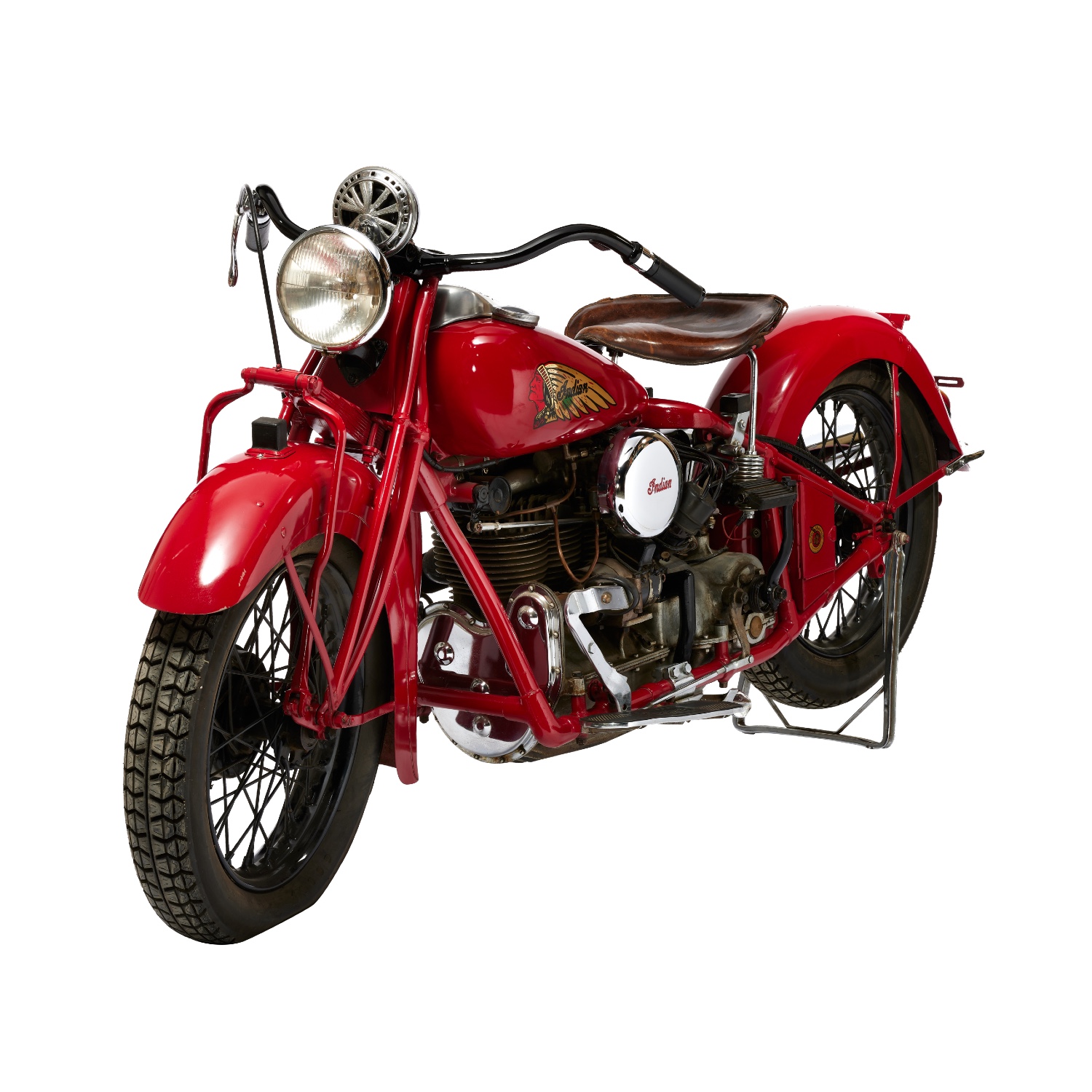 1939 Indian “4” Model motorcycle, bright red, considered by many the Duesenberg of motorcycles, built by the Indian Motorcycle Co. from 1928 to 1942 (est. CA$70,000-$75,000).