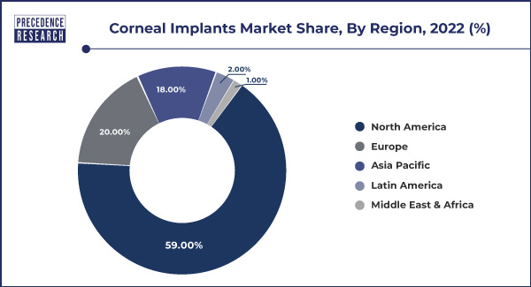 In 2022, North America dominated the market. Patients worldwide travel to North America, mainly the United States, in search of cutting-edge medical care services. An influx of foreign patients has resulted from the availability of state-of-the-art corneal implant treatments and knowledgeable healthcare personnel in the area, which has helped the industry grow. In the United States, insurance favors corneal implant operations, encouraging medical professionals to offer these procedures. This has facilitated patient access to and affordability of corneal implants, spurring industry expansion.