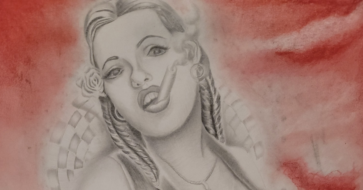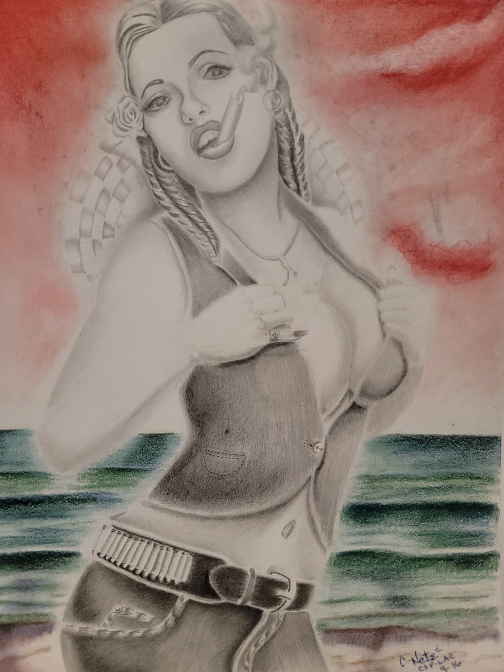 La Reina de las Mujeres Chicas (The Queen of the Petite Women), HIGHLIGHTED, (2016), California prison artist C-Note