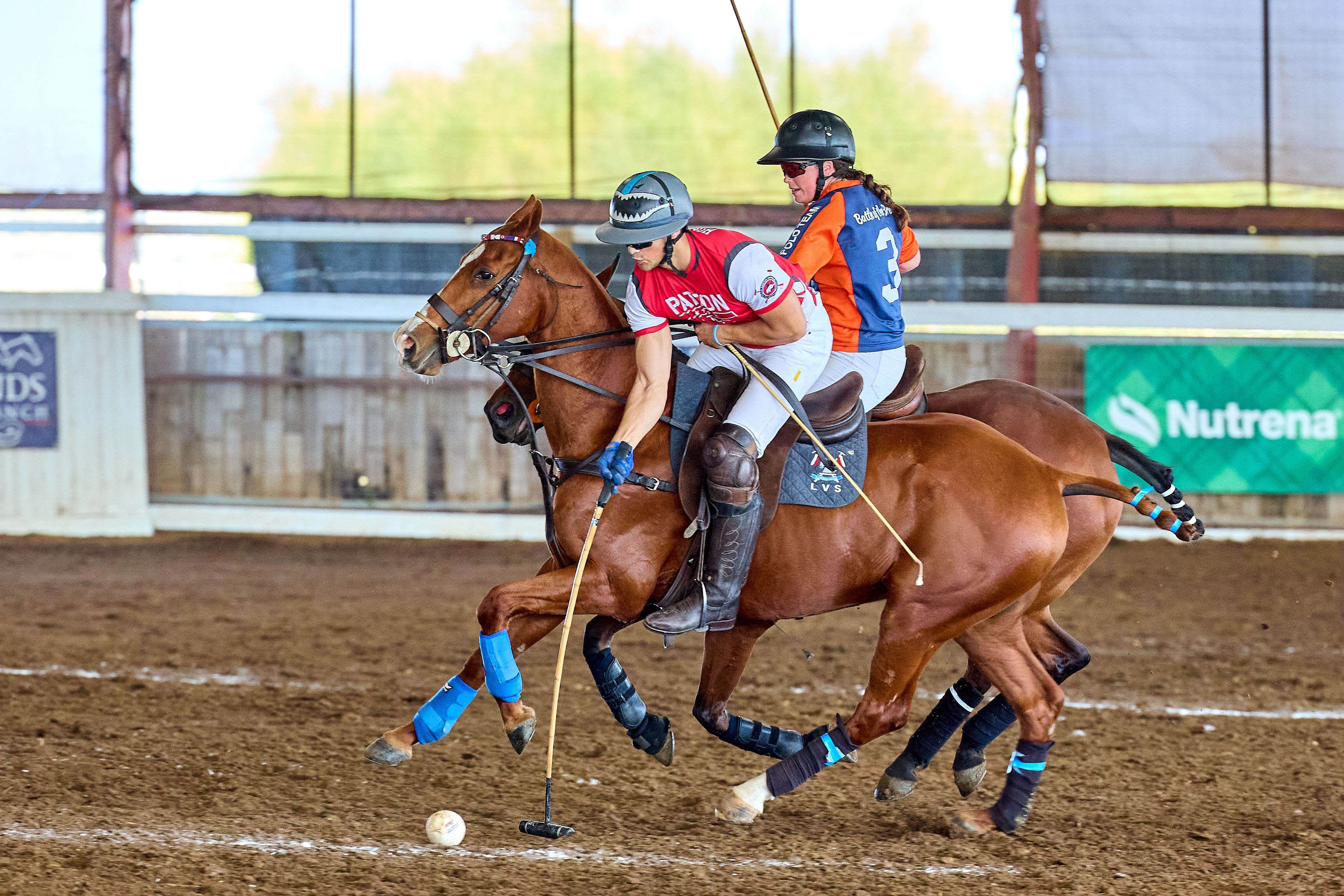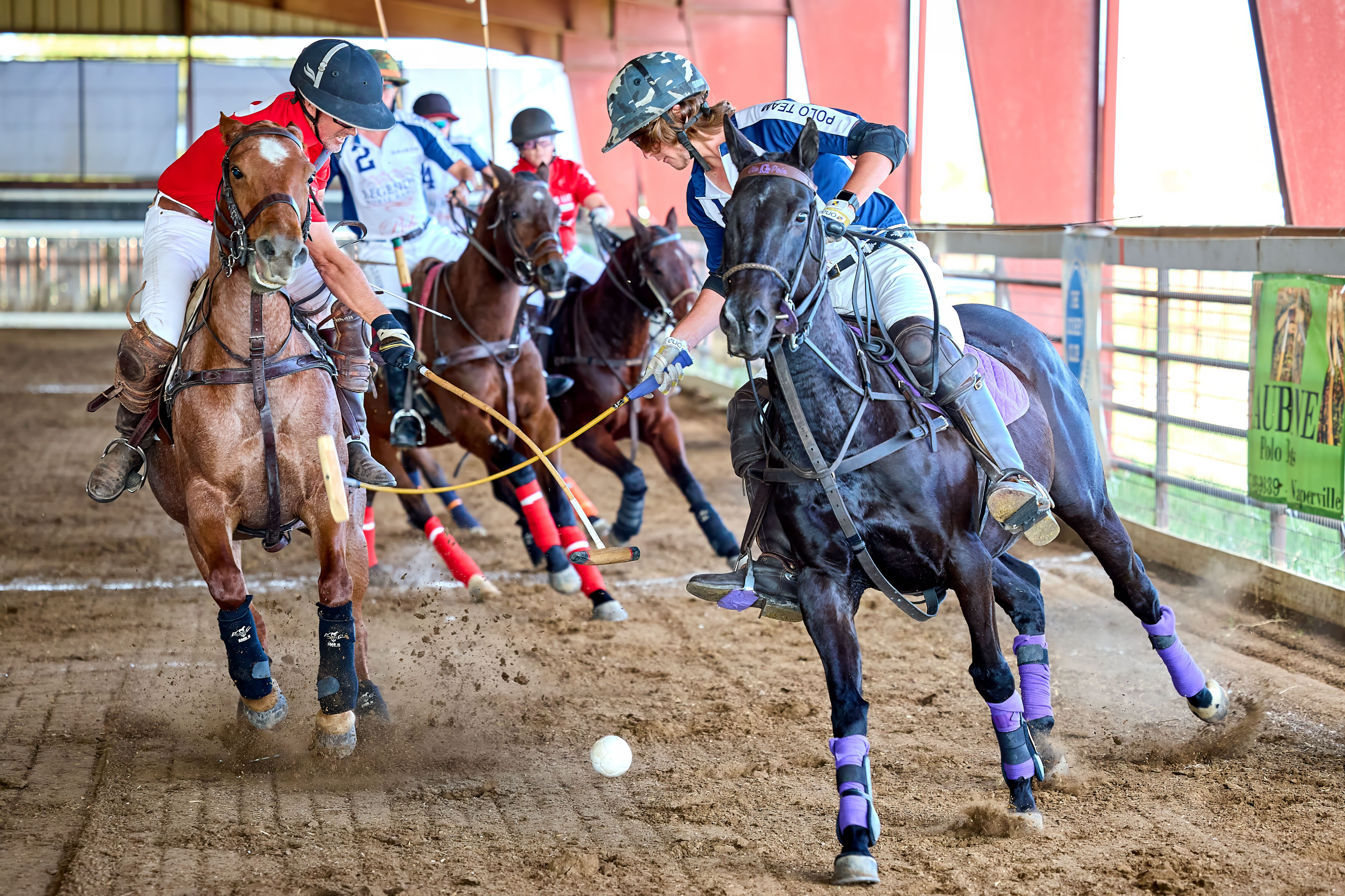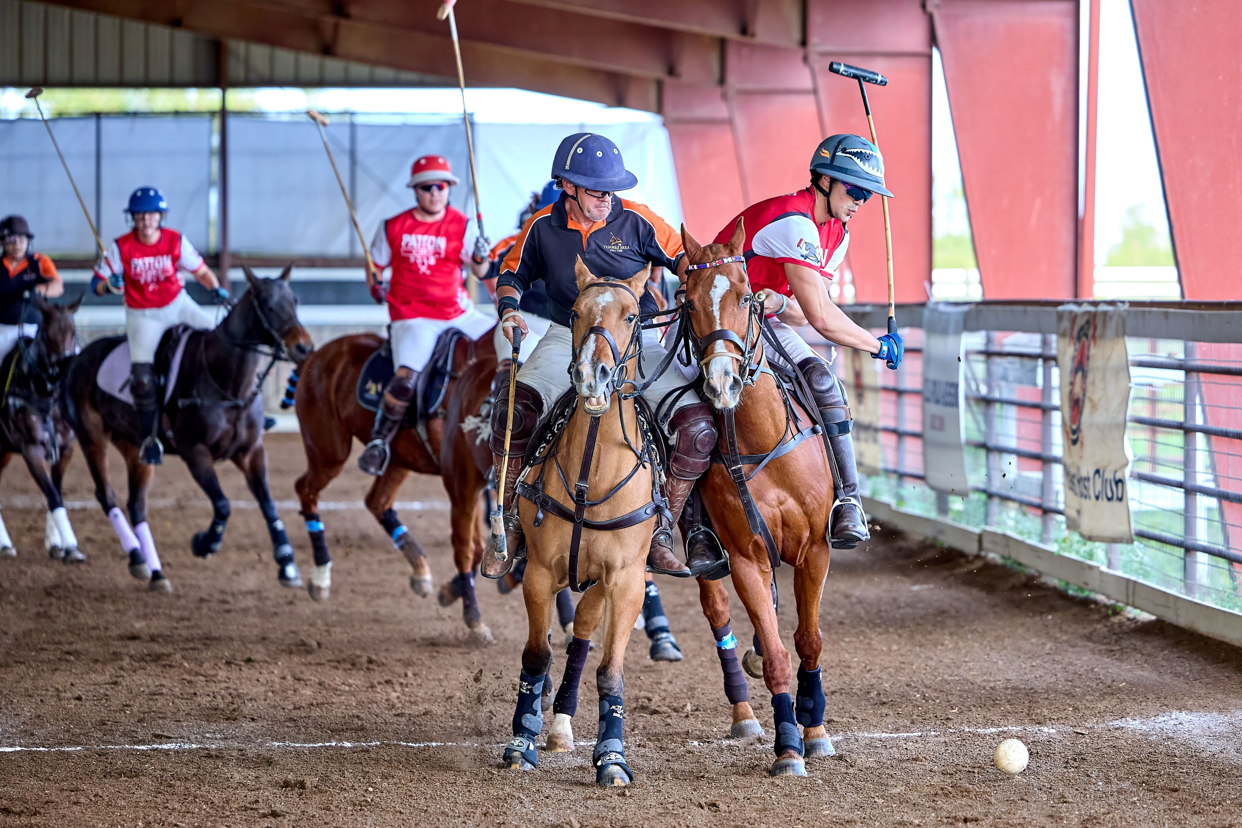 Arena polo is similar to its outdoor cousin with players on horseback hitting a ball with polo mallets through a goal, but that is where the similarities end.