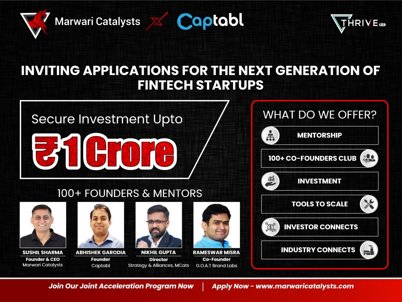This cohort program aims to provide unparalleled support to early-stage FinTech startups, combining Marwari Catalysts' extensive experience in nurturing startups with Captabl's expertise in financial technology. The collaboration brings together two industry leaders with a shared commitment to driving innovation and fostering the growth of disruptive solutions in the FinTech space.