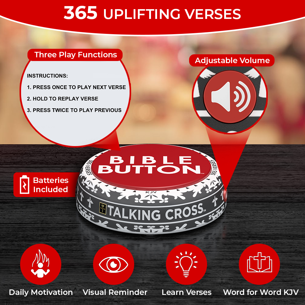 RAVENSWOOD, W VA., UNITED STATES, November 29, 2023 /EINPresswire.com/ -- Talking Cross has enjoyed a successful launch of its new “Bible Button,” a device that quotes a verse from the Bible whenever it is pressed. Released recently on Amazon, the Bible Button comes with 365 uplifting Biblical verses, one for each day of the year. It’s like the Easy Button for Christians. Users can hear motivation from the Bible without having to use their cellphones. The Bible Button is a device that enables people to incorporate the word of God in their daily lives—offering a spiritual aid for the storms of life. The Bible Button makes for great Christian gifts.The Bible Button was created by Corey Wratchford, a truck driver who went temporarily blind while driving and took it as a sign from God to turn his life around. He said, “When I’m going through a tough time, or I’m in a hurry, it’s great to be able to just press down and hear an uplifting word from God.” Bible Buttons are great Christian gifts for baptisms, pastor appreciation, first communions, holidays, and many more occasions.