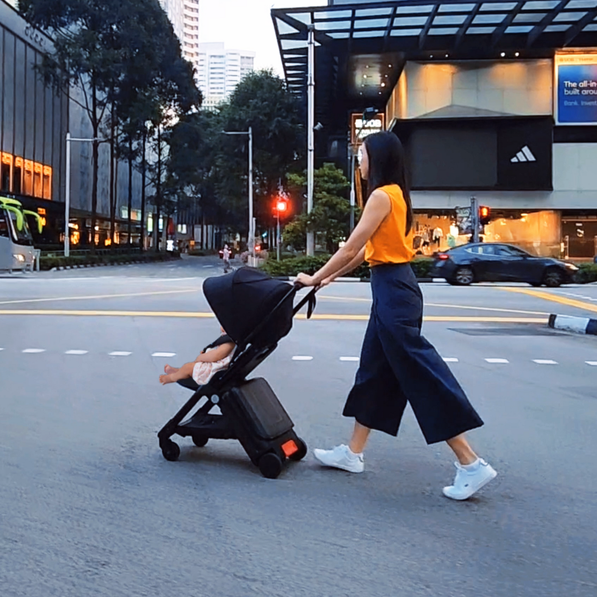 Traveling with kids made easy with the world's first carry on luggage stroller.