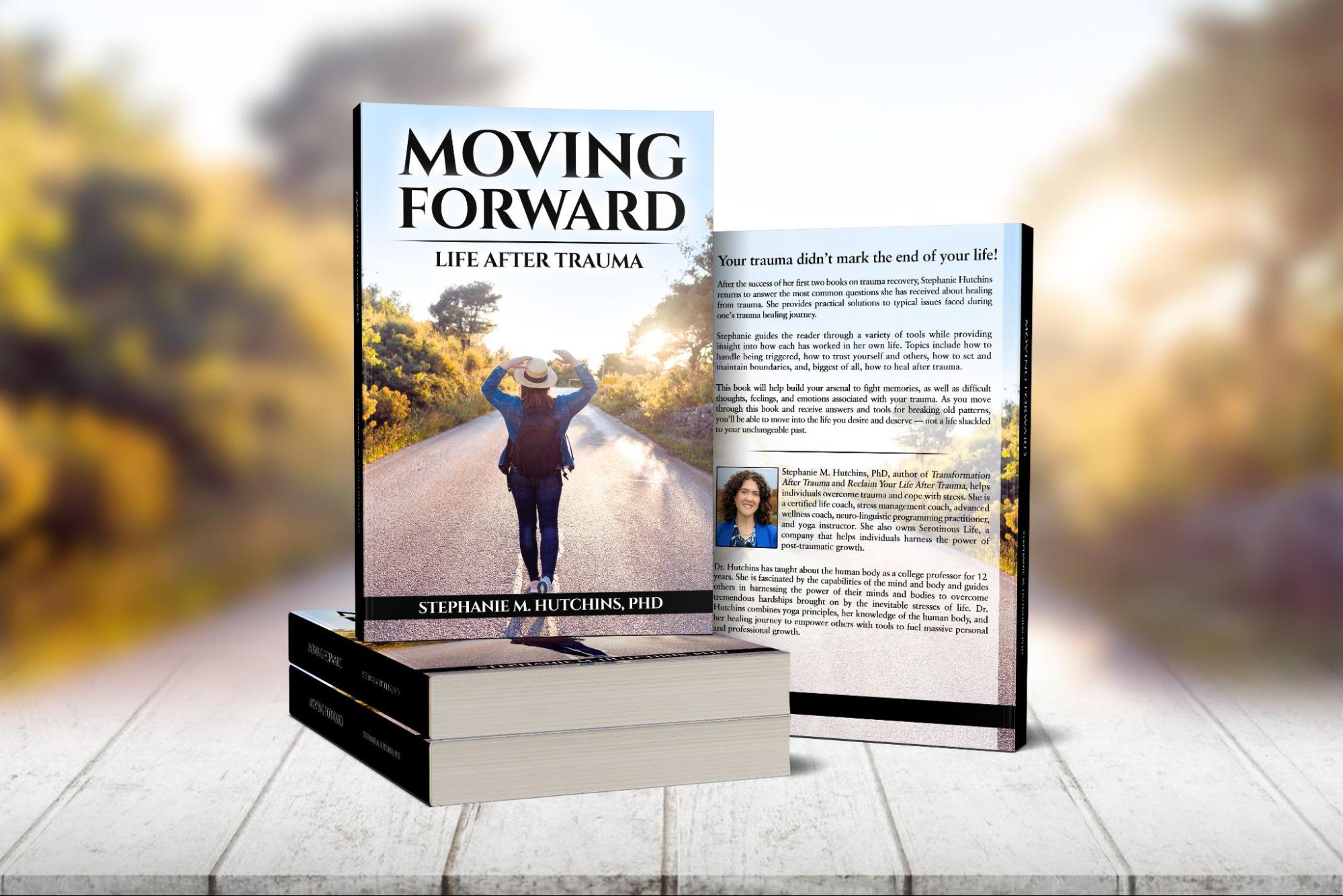 Moving Forward: Life After Trauma by Stephanie M. Hutchins, PhD, along with her previous two books, are available for sale on Amazon.