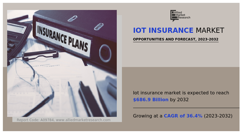 NEW CASTLE, WILMINGTON, UNITED STATES, November 29, 2023 /EINPresswire.com/ -- Allied Market Research published a report, titled, "IoT Insurance Market by Component (Solution and Service), Insurance Type (Life and Health Insurance, Property and Casualty Insurance, and Others), Application (Automotive, Transportation, and Logistics, Life and Health, Commercial and Residential Buildings, Business and Enterprise, Agriculture, and Others), and Region (North America, Europe, Asia-Pacific, and LAMEA): Global Opportunity Analysis and Industry Forecast, 2022-2032." According to the report, the global IoT insurance industry generated $31.5 billion in 2022 and is estimated to reach $686.9 billion by 2032, witnessing a CAGR of 36.4% from 2023 to 2032.