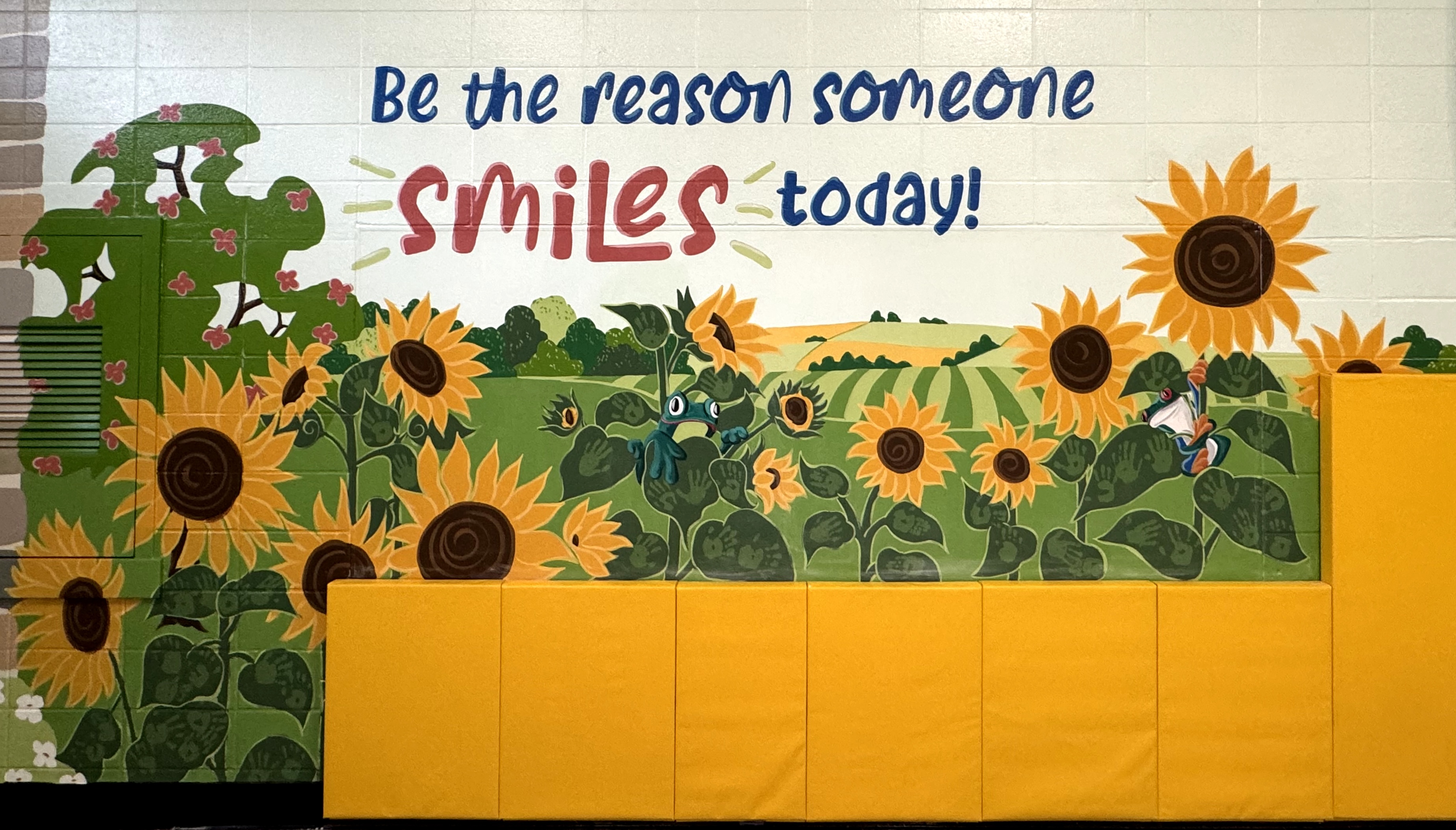 Each year, the mural evolved to reflect the diverse functions of the Multi-Purpose Room. From athleticism and healthy living to the rhythm of music and the world of theater, the mural has become a visual journey, capturing the essence of each year's theme. Caren Frost Olmsted is a renowned artist celebrated for her distinctive style and commitment to community-based art projects.