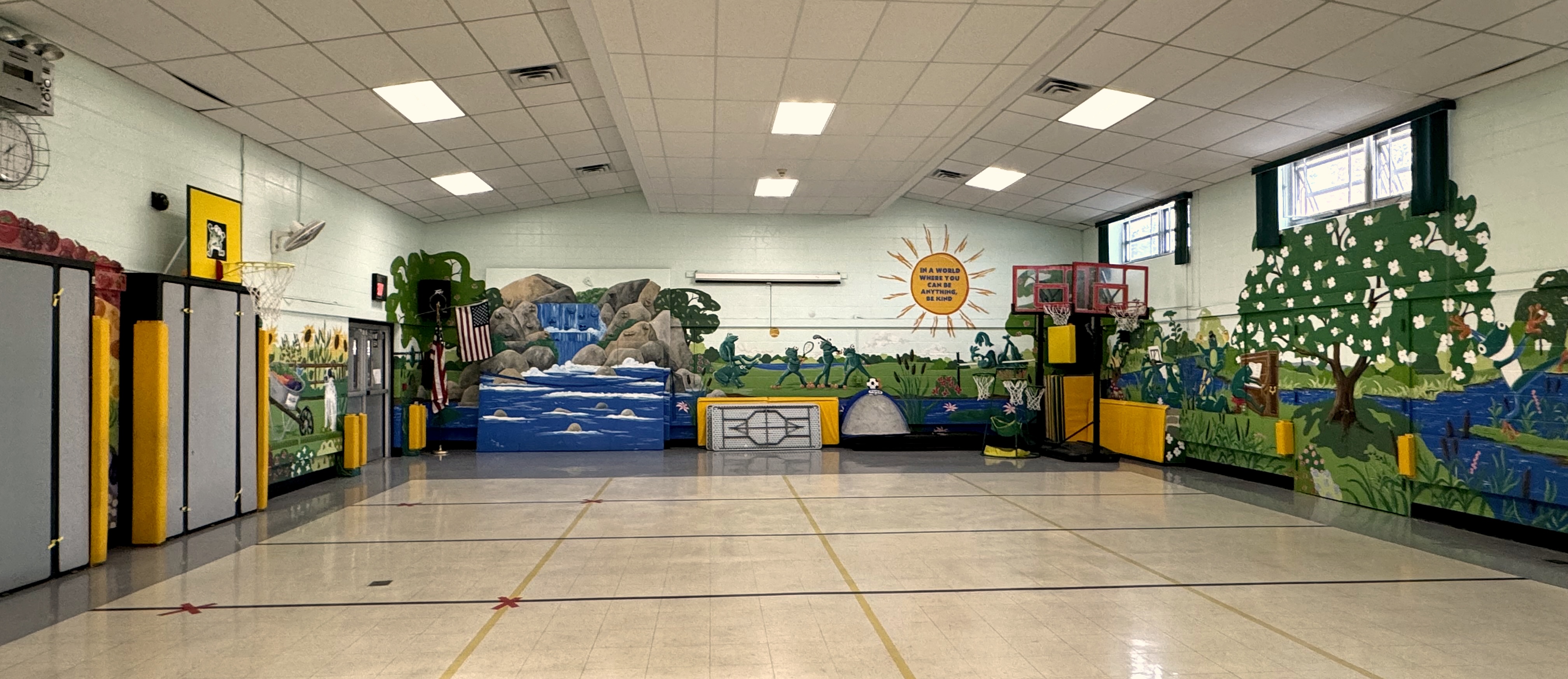 Principal Matt Tuorto shares his thoughts on the mural: "The completion of the Multi-Purpose Room mural marks a significant moment in our school's history. It's not just art on the walls; it's a testament to the creativity, collaboration, and lasting impact that art can have on our students. This mural will continue to inspire generations to come."