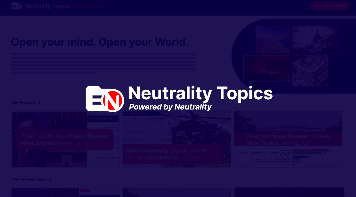 Neutrality Topics: Interactive info-graphics foster accountability with factual data. Access diverse content, explore comprehensive views, and open the mind.