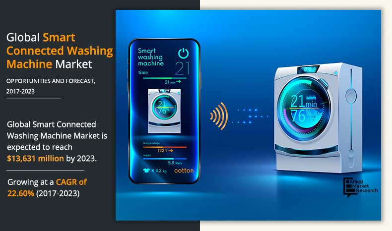 The Global Smart Connected Washing Machine Market was valued at $3,712 million in 2016, and is projected to reach $13,631 million by 2023, growing at a CAGR of 22.60% from 2017 to 2023