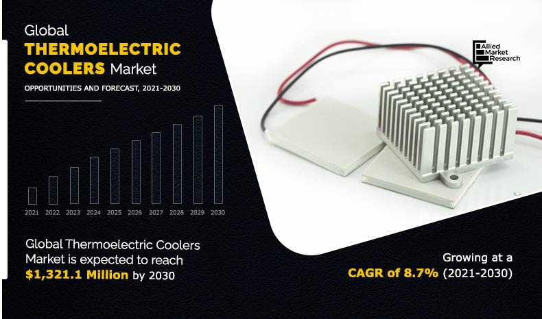 The thermoelectric coolers market size was valued at $0.6 billion in 2020, and is expected to reach $1.3 billion by 2030, registering a CAGR of 8.7% from 2021 to 2030. Thermoelectric cooling is based on the Peltier effect. The effect creates a temperature difference by transferring heat between two electrical junctions. These thermoelectric coolers are manufactured in standard designs or specially designed as per requirement of customers.