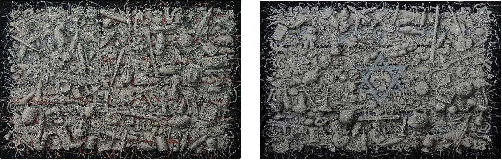 Artist Alexi Torres is in the spotlight with a timely and powerful presentation featuring the "American Dream” U.S. Flag and the “Heart of Israel” Flag hanging together as the centerpiece. Torres's work as a diptych emphasizes "The Fight for Good, Humanity, and Democracy,” a profound exploration of these themes through his masterful brushstrokes.