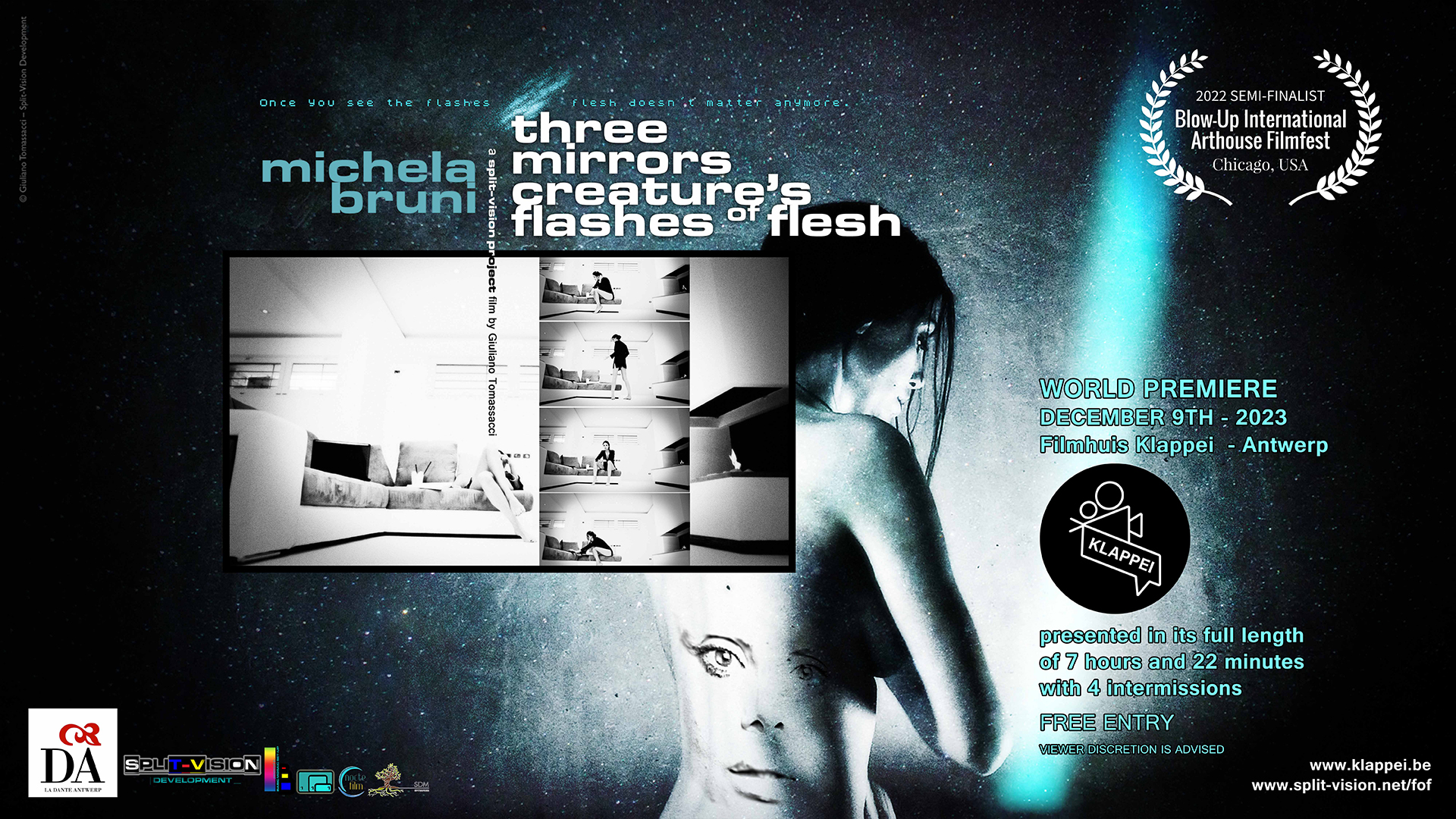 ANTWERP, ANTWERPEN, BELGIUM, December 4, 2023 /EINPresswire.com/ -- Split-Vision Development, with the partnership of Società Dante Alighieri of Antwerp, is proud to announce the world theatrical premiere of Giuliano Tomassacci’s "Three Mirrors Creature's Flashes of Flesh" at Filmhuis Klappei in Antwerp on December 9, 2023.Feature directorial debut for writer and cinematographer Giuliano Tomassacci (Report 51) - who previously directed the sci-fi short movie “Here We Go Again, Rubinot!” - Three Mirrors Creature's Flashes of Flesh is an experimental arthouse drama, with visceral horror and sci-fi resonances.