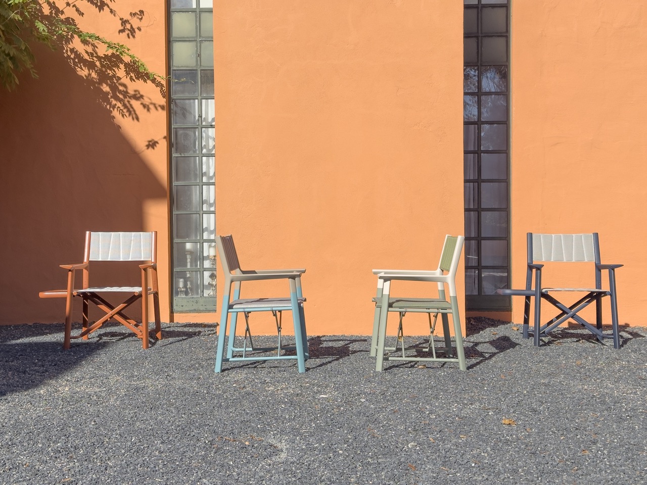 Among the proposed projects, the ones embraced with great interest were the ones created and defined in collaboration with Michael Graves Design. This design studio is a rich source of designs which has inherited the legacy of the great American architect, Michael Graves (1934-2015) and has become part of the YAAZ team. From this first collection, which confirms the international atti- tude of YAAZ, the new folding chair was developed, which harks back to and draws inspiration from the historical furniture of noble country estates. Made from lightweight aluminum, this product evokes the refined and charming holi- day destinations of a bygone era. The legs and armrests are each triangular in section, with flared armrests for enhanced comfort.