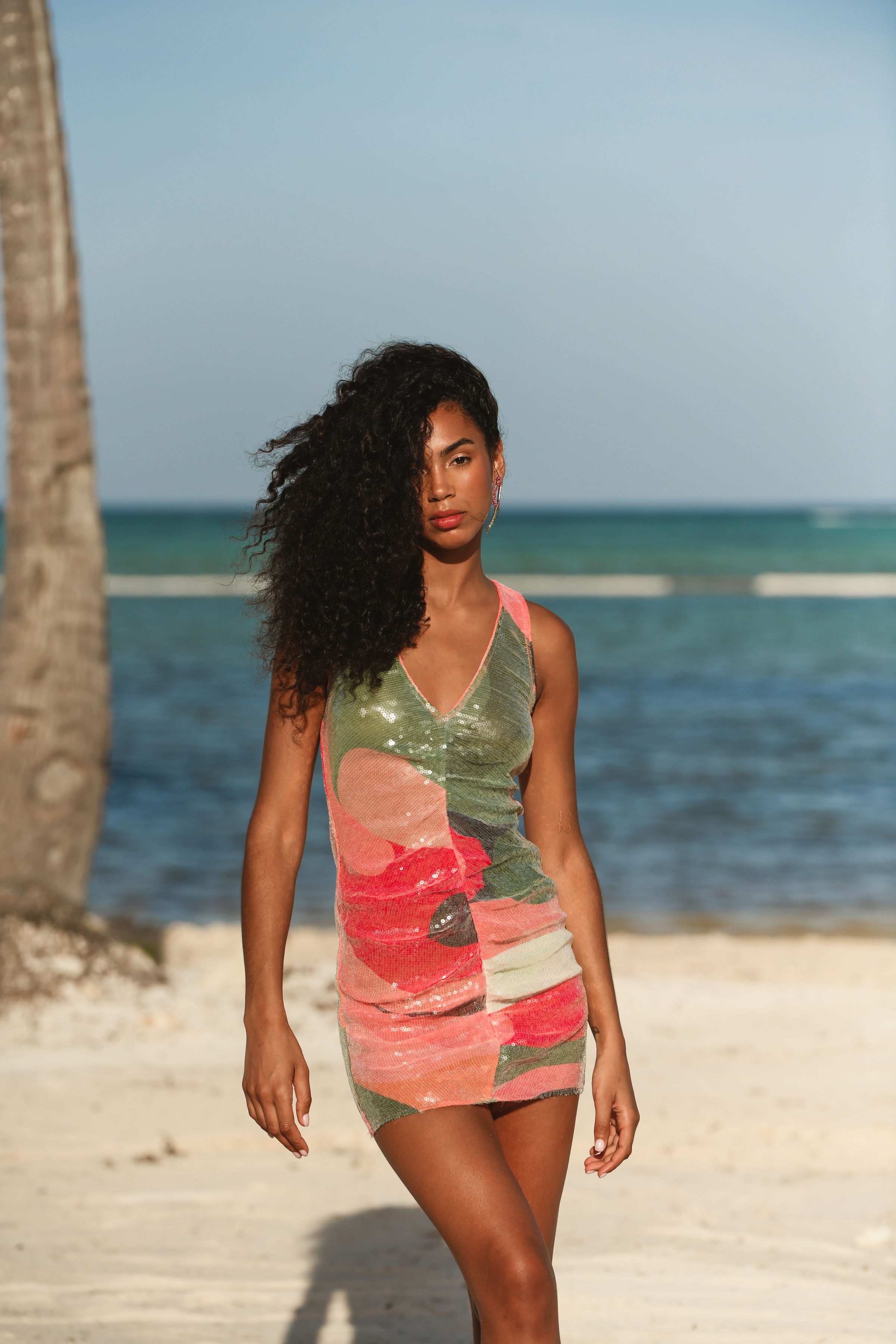 Hutch Swim features a range of signature prints, such as florals, tropical patterns, metallics, and vibrant colors, enhanced by tortoise shell acrylic rings, side ties, and belt accents. The bottoms are available in various cuts, including high and low-waisted options, offering full to medium coverage. The matching bikini tops feature bandeau, halter, and traditional triangle styles, as well as pushup and underwire. Additionally, the cover-ups come in novelty fabrics in diverse styles, including maxi and mini dresses, as well as wide-leg pants. Each piece exemplifies the enduring style and adaptability inherent to Hutch’s design philosophy.