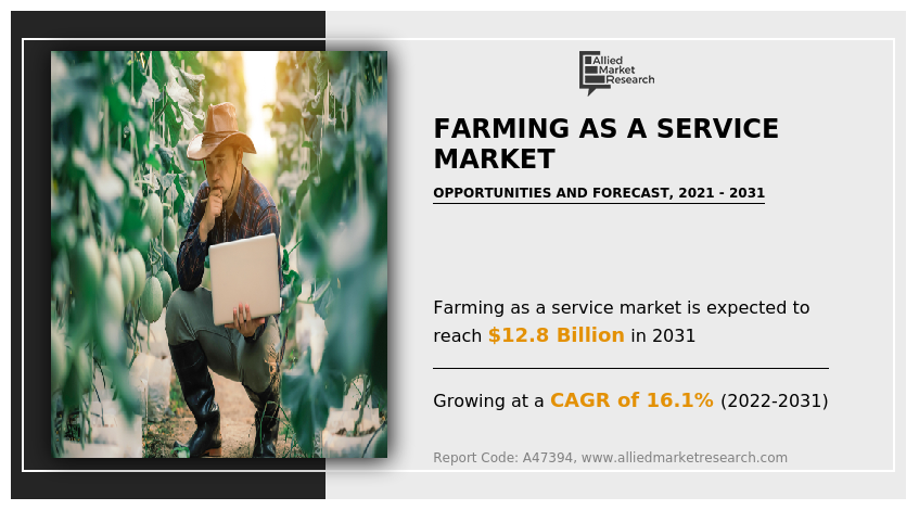 According to a recent report from Allied Market Research titled "Farming as a Service Market," the market was valued at $2.9 billion in 2021 and is forecasted to reach $12.8 billion by 2031, growing at a notable CAGR of 16.1% from 2022 to 2031.