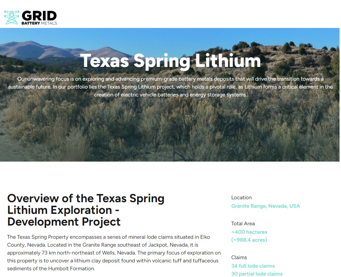 Grid Battery Metals Completes Phase 1 of Exploration Plan at Texas Springs Nevada Lithium Project: Stock Symbol: EVKRF