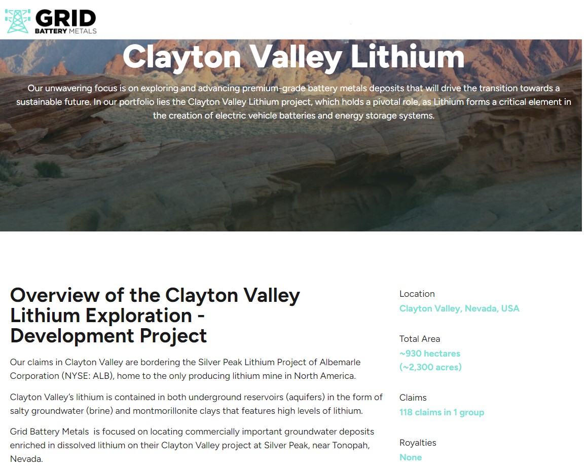 “Grid's Clayton Valley project in #Nevada borders the Silver Peak Lithium Project of Albemarle, the only producing #lithium mine in North America. Here are the details on our #exploration plans, and how lithium is contained in both underground reservoirs and clay deposits.” Click here to view the map: https://twitter.com/GRIDBattery/status/1732123172189733292