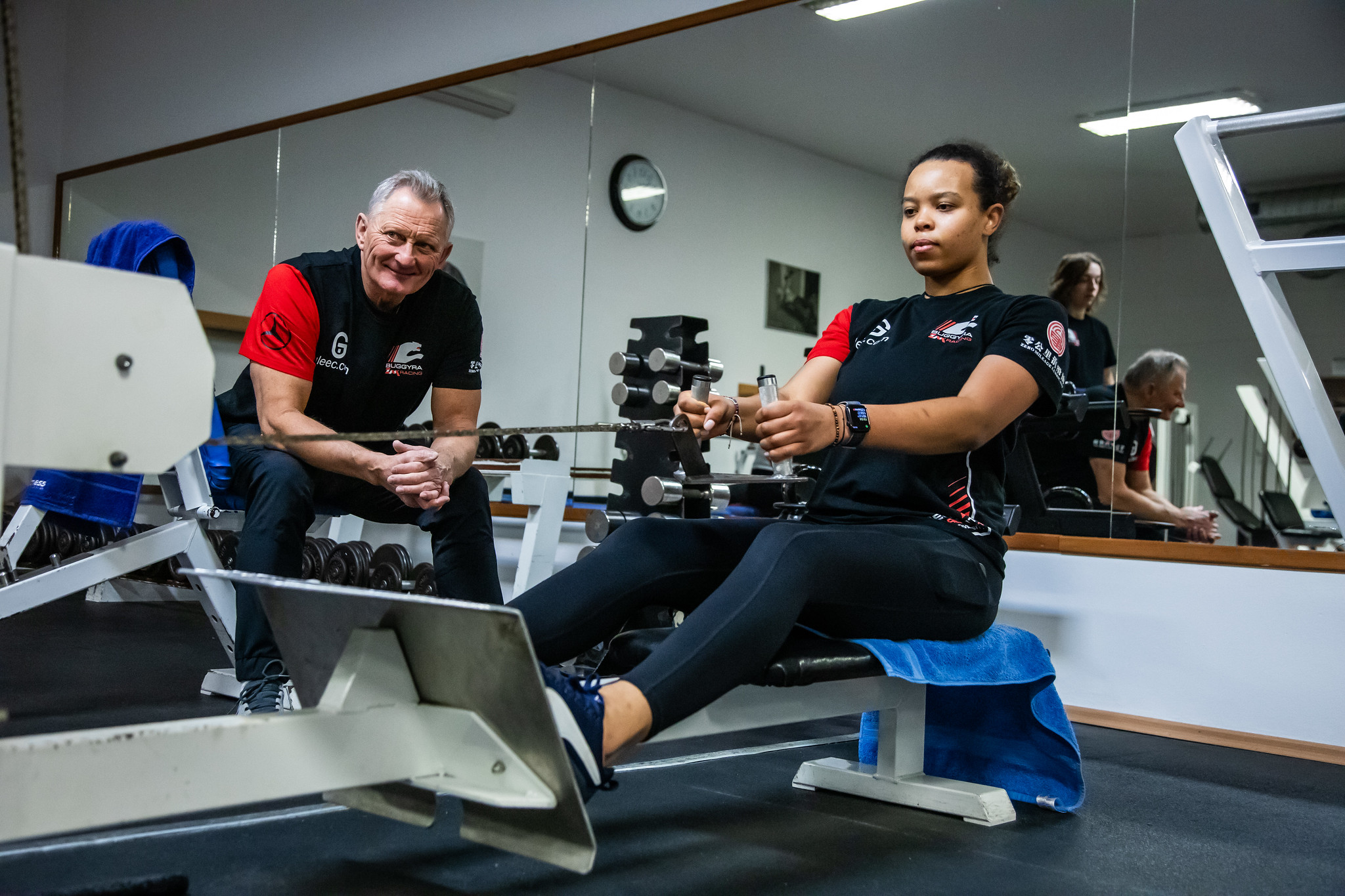 Every time Aliyyah leaves the training camp, she takes away a new program tailored to her current requirements. It is designed to last for a few weeks, so she can train at her rhythm and in line with her racing schedule. Talking about her racing preparation, Aliyyah explains: “Just before a race, I do a little less full-strength and some more long cardio training, like biking, but no heavy training. And directly before I get into the car, I warm up with rubber bands and the lights panel for my reaction. I also do some dynamic stretching. And for my rallies, I am now also putting my focus on warming up my wrists!”