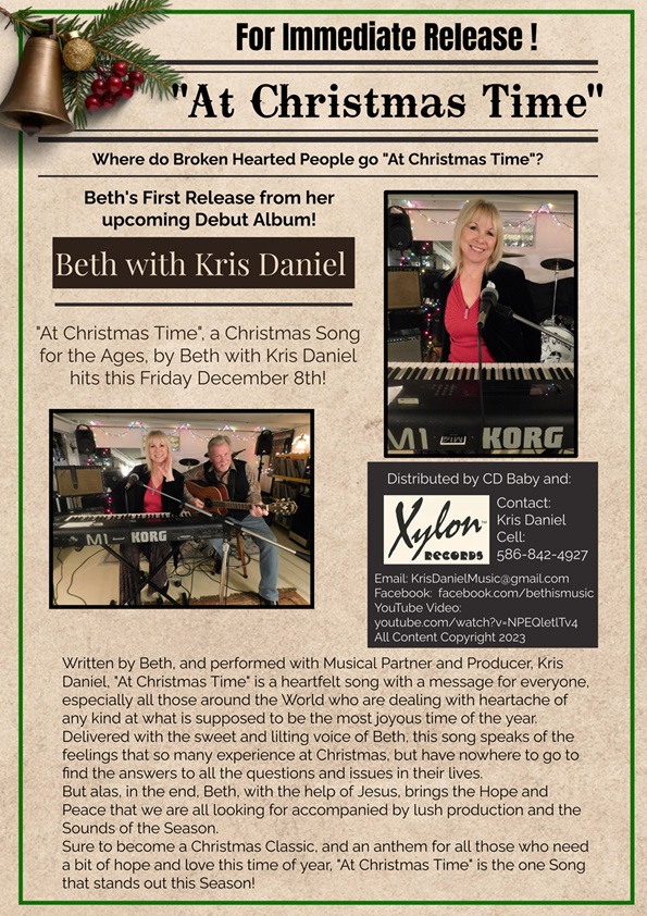 Debuted last Thursday, December 8th, "At Christmas Time" is more than just a song; it's a timeless anthem that explores the complex emotions many individuals face during the holiday season. Penned by Beth and brought to life in collaboration with her musical partner and producer, Kris Daniel, the track delves into the universal struggles and challenges that people grapple with, especially when the world is celebrating joy, love, and togetherness.