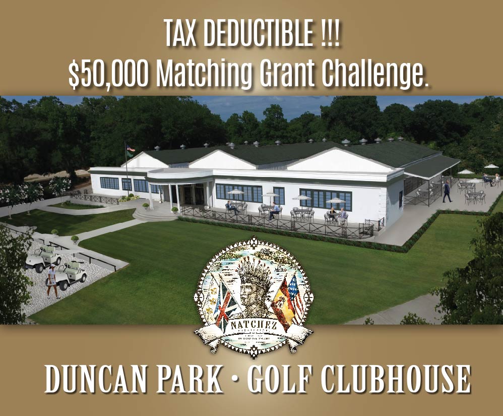 A $50,000 Matching Grant Challenge to help raise funds for the Duncan Park Clubhouse. The fundraiser is being organized through the Natchez Adams County Community Alliance.