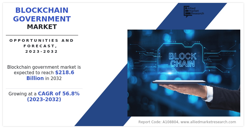 Allied Market Research published a report titled, "Blockchain Government Market by Provider (Application Providers, Middleware Providers, Infrastructure Providers), by Application (Identity Management, Asset Registry, Smart Contracts, Payments, Voting, Others): Global Opportunity Analysis and Industry Forecast, 2023-2032." According to the report, the global blockchain government industry generated $2.5 billion in 2022 and is anticipated to generate $218.6 billion by 2032, witnessing a CAGR of 56.8% from 2023 to 2032.