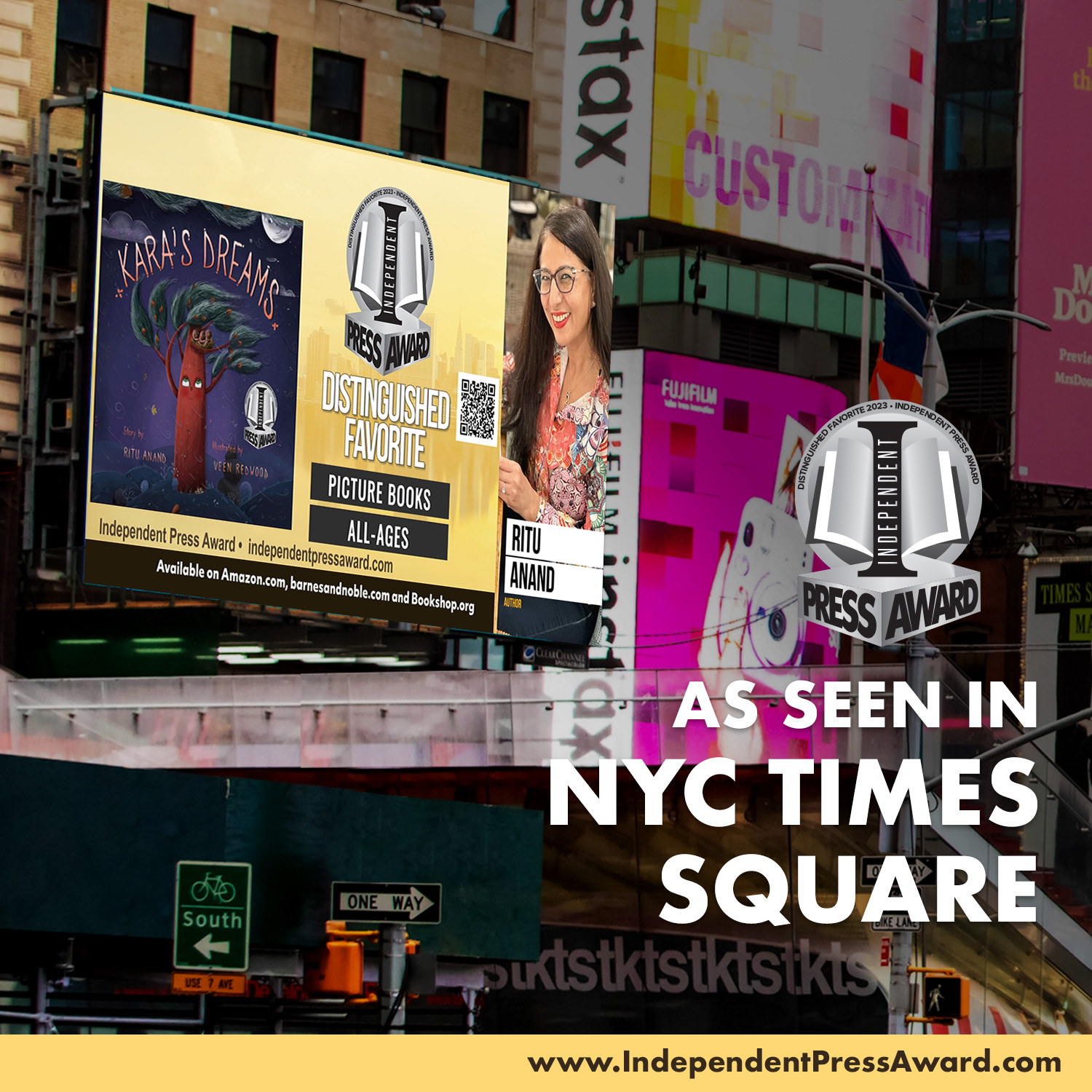 BROOKLYN, NY, UNITED STATES, December 18, 2023 /EINPresswire.com/ -- Kara's Dreams by Ritu Anand, an Independent Press Award 2023 Distinguished Favorite in the category of Picture Books - All Ages, is being displayed in the heart of New York City Times Square on December 20th.The program, curated by publisher Ted Olczak of the "INDEPENDENT PRESS AWARD and NYC BIG BOOK AWARD" magazine, is a celebration of literary excellence that will showcase Ritu Anand and 34 other distinguished authors’ work to the world.