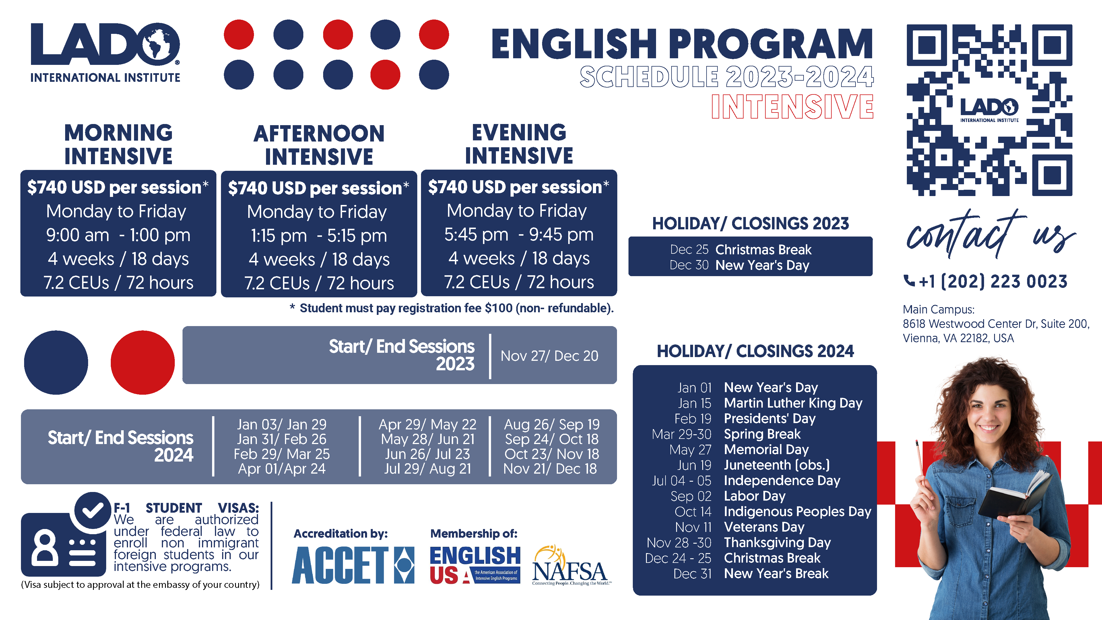 VIENNA, VIRGINIA, ESTADOS UNIDOS, December 18, 2023 /EINPresswire.com/ -- Lado International Institute, la institución líder en la enseñanza del inglés como segunda lengua con más de 45 años de experiencia en la región de Washington DC, se complace en anunciar el cierre del año con una serie de eventos y anuncios significativos que destacan su compromiso con la excelencia educativa, la responsabilidad social y la proyección global.