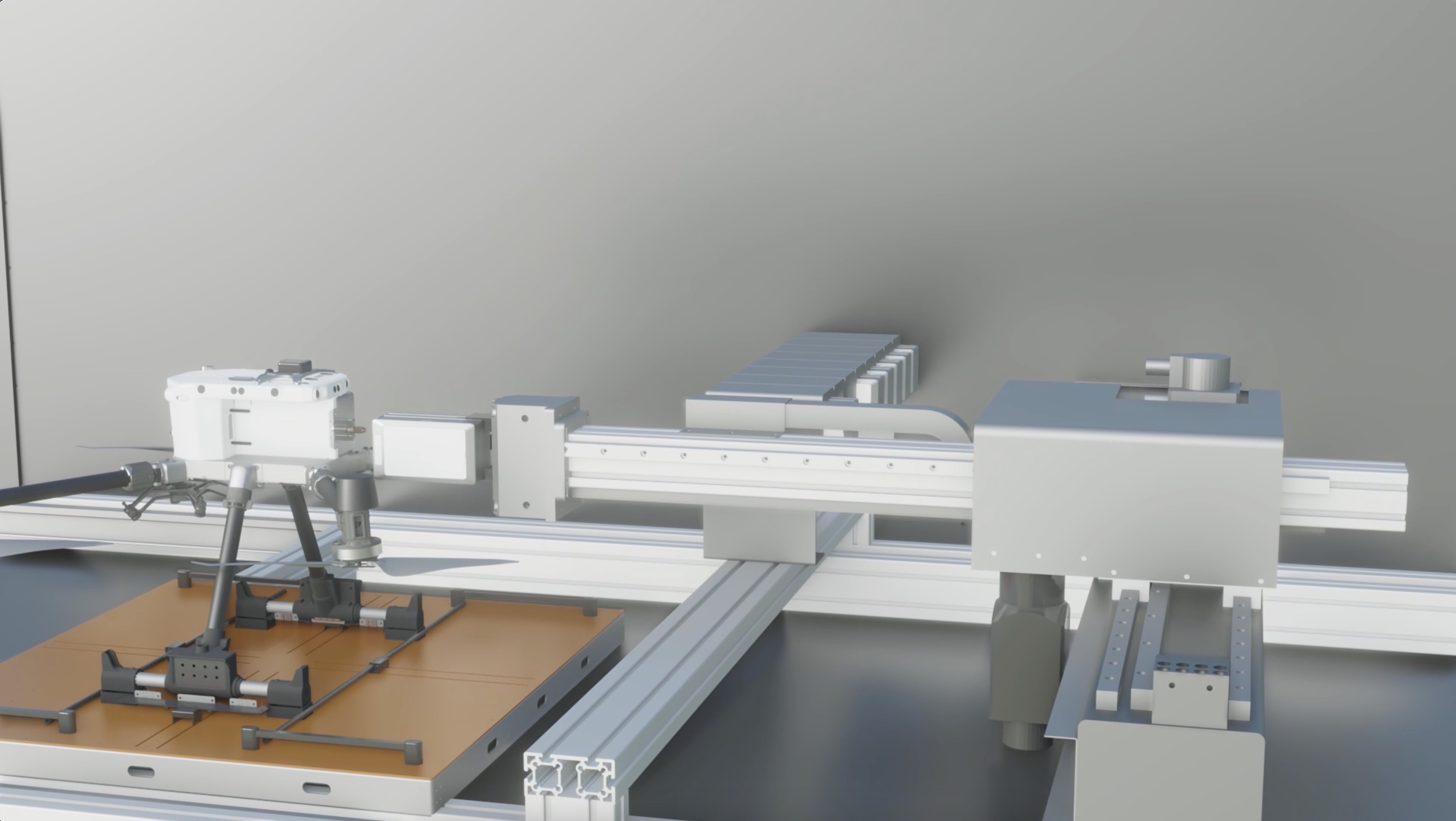 For cargo drones, a tailored package-swapping solution can be customized, utilizing a flexible robotic arm to seamlessly swap payload, battery, and packages. Additionally, large VTOL drones can undergo recharging or battery swapping on the T200's charging board.