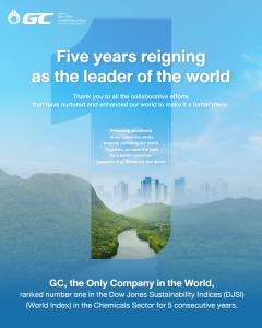BANGKOK, THAILAND, December 19, 2023 /EINPresswire.com/ -- GC has achieved the top position in the Chemicals Sector according to the DJSI World Index, securing the highest score for five consecutive years. It stands as a global sustainability leadership.