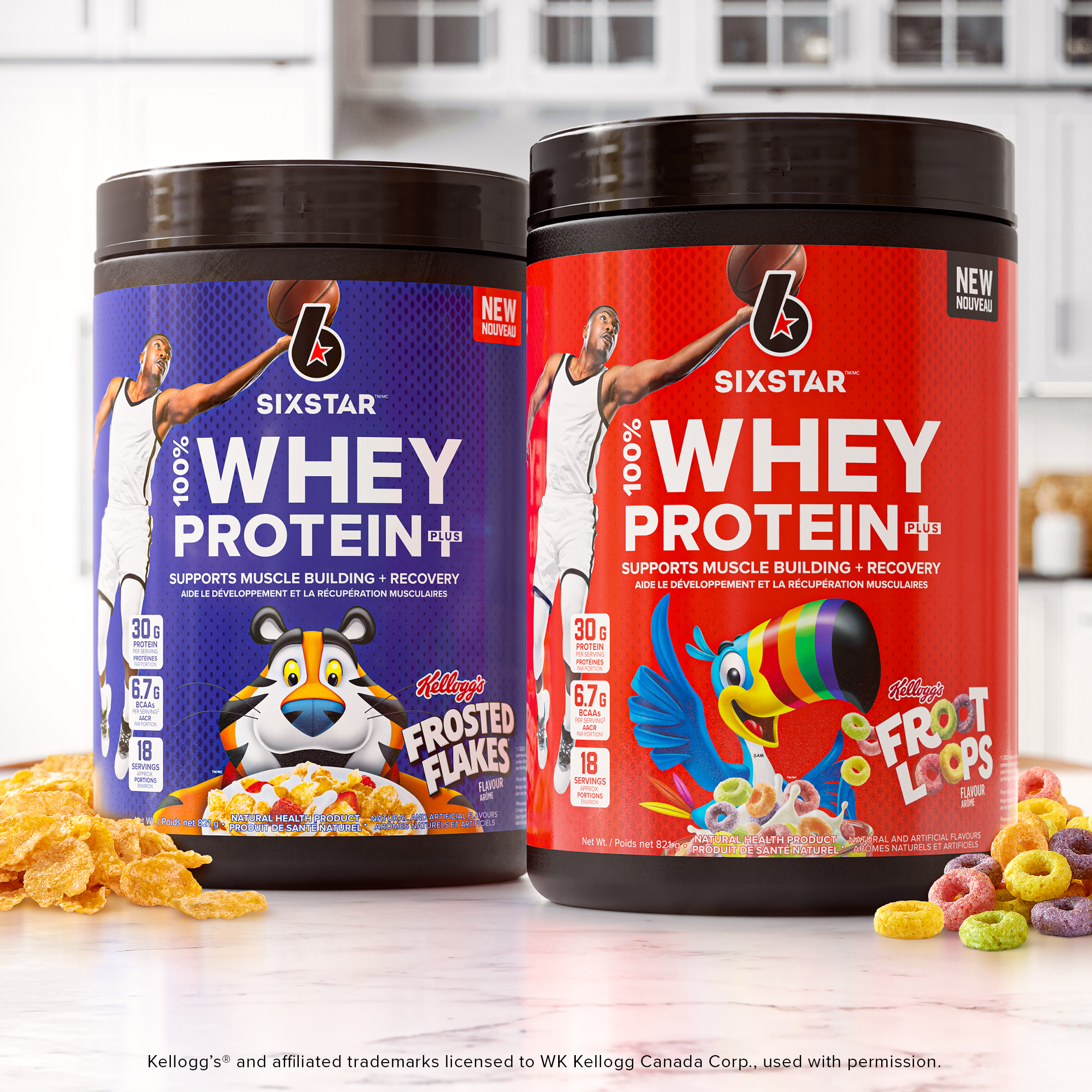 SIX STAR® 100% Whey Protein Plus in Kellogg’s Frosted Flakes® and Froot Loops® flavours are now available at Loblaws® branded locations, Shoppers Drug Mart® and Walmart®.