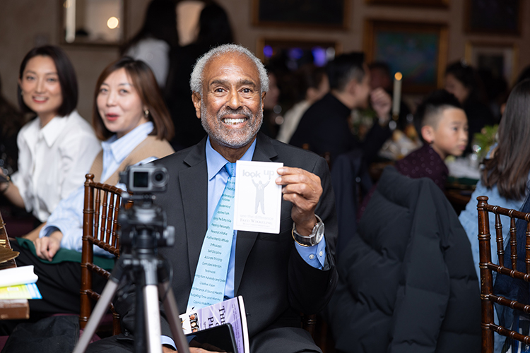 In his engaging speech, Wikkeling urged the audience to change their perspectives, both literally and metaphorically. "Do you realize how often you look down? Try looking up instead—go ahead, stop looking down your device and look up toward the ceiling, right now! Doesn't it feel better to look up instead of down?" he challenged. This simple yet powerful gesture was a metaphor for his broader message: to adopt a more positive and uplifted outlook in life.